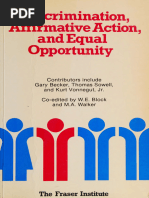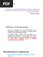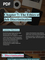 Discusses internal conflicts in business job discrimination Injustice prevalent in business Criticism of affirmative action: special privileges for a select minority is in effect a type of discrimination Discrimination based on gender and race is considerable and persistent Need to examine nature of discrimination and ethical aspects of such behaviour
