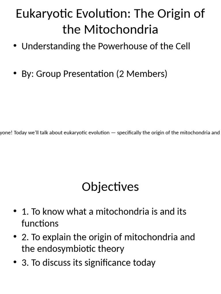 yone! Today we’ll talk about eukaryotic evolution — specifically the origin of the mitochondria and