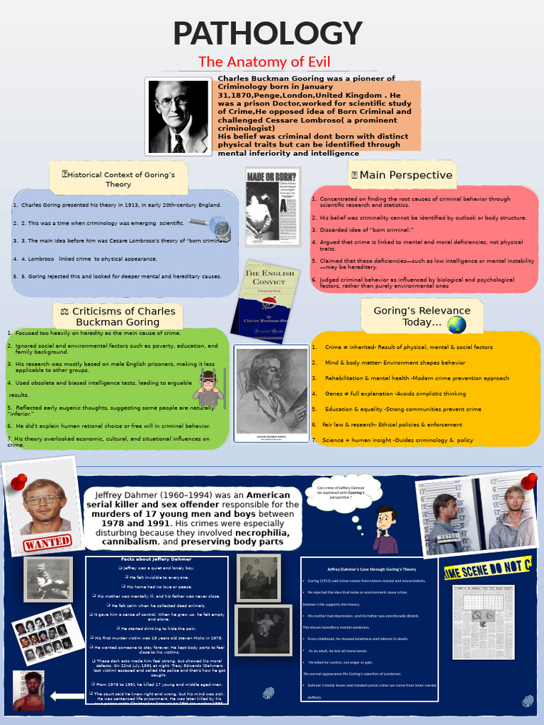 1. Charles Goring presented his theory in 1913, in early 20th-century England. scientific research and statistics.