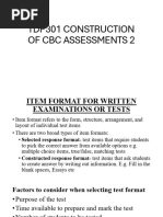 regarding the format of the test under construction.