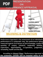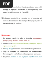 Appraisal is a method of evaluating the behaviour of employees in workplace including quantitative and qualitative aspects of job performance. It is a systematic and objective way of evaluating both work related behaviour and potential of employees. It is a process that involve determining and communicating to an employee how he or she is performing the job and ideally establishing a plan for improvement.
