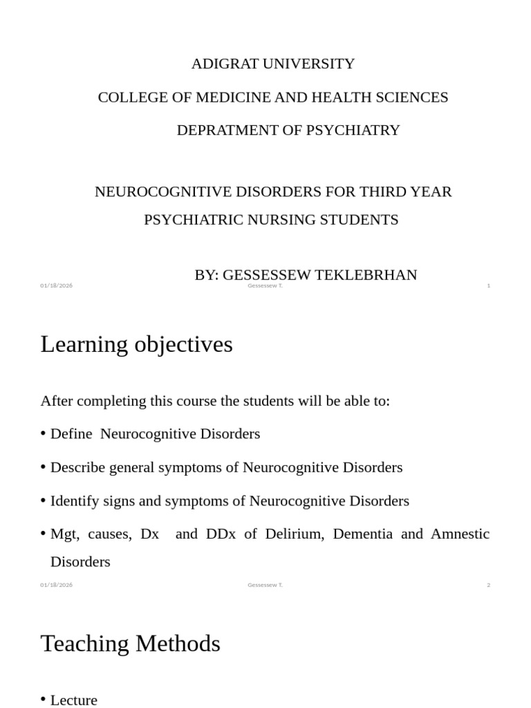 NEUROCOGNITIVE DISORDERS FOR THIRD YEAR