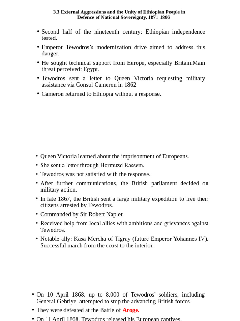 • Second half of the nineteenth century: Ethiopian independence
