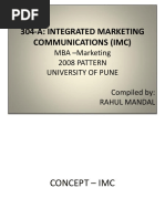 A concept of marketing communication planning that recognizes the added value of a comprehensive plan that evaluates the strategic roles of a variety communication discipline eg. Advertising, direct response, Sales Promotion & public relations and combines these disciplines to provide and consistency and maximum impact. By American Association of Advertising Agencies The process of developing and implementing various forms of persuasive communication programs with customers and prospects over Time.