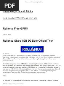 Reliance Free GPRS - Technology Tips & Tricks