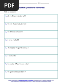 Variable Expressions Worksheet: Write An Expression