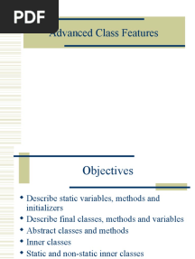 Java Advanced Class Features GuidePDFJava Advanced Class Features GuideAdded by kishored0 ratingsfunction cn(e,t){var n=e+t;return n<=0?0:Math.round(e/n*100)}% found this document usefulSave Java Advanced Class Features Guide for later