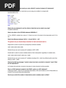When to Use SELECT vs IF in SASPDFWhen to Use SELECT vs IF in SASAdded by Siva Nunna0 ratingsfunction cn(e,t){var n=e+t;return n<=0?0:Math.round(e/n*100)}% found this document usefulSave When to Use SELECT vs IF in SAS for later
