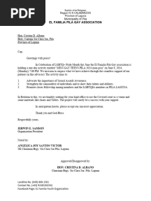 Solicitation LetterPDFSolicitation LetterAdded by Jerwin Samson0 ratingsfunction cn(e,t){var n=e+t;return n<=0?0:Math.round(e/n*100)}% found this document usefulSave Solicitation Letter for later