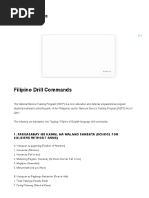 Filipino Drill Commands - Tagalog To English - Dictionary OnlinePDFFilipino Drill Commands - Tagalog To English - Dictionary OnlineAdded by Jim Cee0 ratingsfunction cn(e,t){var n=e+t;return n<=0?0:Math.round(e/n*100)}% found this document usefulSave Filipino Drill Commands - Tagalog To English - Dictionary Online for later