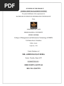 Synopsis of The Project "Mobile Shop Management System"PDFSynopsis of The Project "Mobile Shop Management System"Added by ashim010 ratingsfunction cn(e,t){var n=e+t;return n<=0?0:Math.round(e/n*100)}% found this document usefulSave Synopsis of The Project "Mobile Shop Management System" for later