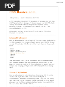 Chapter: 1 - Introduction To CSS: Internal StylesheetPDFChapter: 1 - Introduction To CSS: Internal StylesheetAdded by ashim010 ratingsfunction cn(e,t){var n=e+t;return n<=0?0:Math.round(e/n*100)}% found this document usefulSave Chapter: 1 - Introduction To CSS: Internal Stylesheet for later