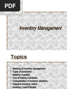 Inventory Management Essentials GuidePDFInventory Management Essentials GuideAdded by Aditya80% (5)function cn(e,t){var n=e+t;return n<=0?0:Math.round(e/n*100)}% found this document usefulSave Inventory Management Essentials Guide for later