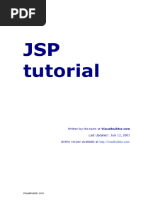 JSP TutorialPDFJSP TutorialAdded by Sravani Reddy0 ratingsfunction cn(e,t){var n=e+t;return n<=0?0:Math.round(e/n*100)}% found this document usefulSave JSP Tutorial for later