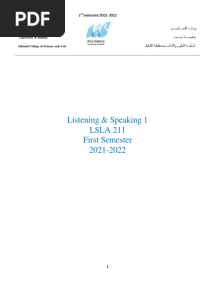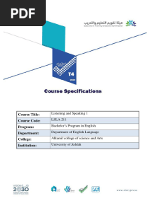 Course Title: Listening and Speaking 1 Code: Program: Department: Institution: Academic Year: Semester: Course Coordinator: Balqees Alsulami Date