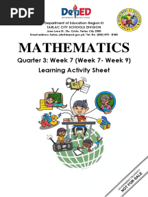 Mathematics: Quarter 3: Week 7 (Week 7-Week 9) Learning Activity Sheet