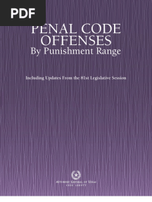 Texas Penal Code Offenses OverviewPDFTexas Penal Code Offenses OverviewAdded by earlgreydb0 ratingsfunction cn(e,t){var n=e+t;return n<=0?0:Math.round(e/n*100)}% found this document usefulSave Texas Penal Code Offenses Overview for later