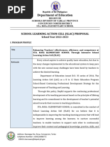SLAC Proposal for Sta. Rosa ElementaryPDFSLAC Proposal for Sta. Rosa ElementaryAdded by KyRIe0 ratingsfunction cn(e,t){var n=e+t;return n<=0?0:Math.round(e/n*100)}% found this document usefulSave SLAC Proposal for Sta. Rosa Elementary for later