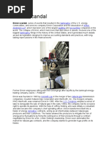 Enron Scandal: Enron Scandal, Series of Events That Resulted in ThePDFEnron Scandal: Enron Scandal, Series of Events That Resulted in TheAdded by tehreem0 ratingsfunction cn(e,t){var n=e+t;return n<=0?0:Math.round(e/n*100)}% found this document usefulSave Enron Scandal: Enron Scandal, Series of Events That Resulted in The for later