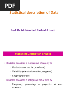 Statistical Description of DataPDFStatistical Description of DataAdded by Asef Raj0 ratingsfunction cn(e,t){var n=e+t;return n<=0?0:Math.round(e/n*100)}% found this document usefulSave Statistical Description of Data for later
