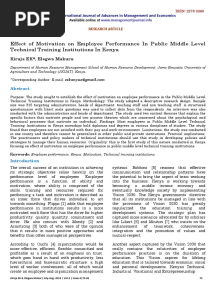 Effect of Motivation On Employee Performance in Public Middle Level Technical Training Institutions in Kenya