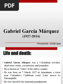 Gabriel García Márquez: Life & LegacyPDFGabriel García Márquez: Life & LegacyAdded by Areeba0 ratingsfunction cn(e,t){var n=e+t;return n<=0?0:Math.round(e/n*100)}% found this document usefulSave Gabriel García Márquez: Life & Legacy for later