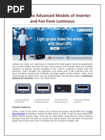 Luminous Inverters & Fans GuidePDFLuminous Inverters & Fans GuideAdded by sandeep0 ratingsfunction cn(e,t){var n=e+t;return n<=0?0:Math.round(e/n*100)}% found this document usefulSave Luminous Inverters & Fans Guide for later