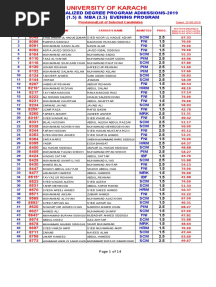 University of Karachi: Mba (1.5) & Mba (2.5) Evening Program Kubs Specialized Degree Program Admissions-2019PDFUniversity of Karachi: Mba (1.5) & Mba (2.5) Evening Program Kubs Specialized Degree Program Admissions-2019Added by kawish0 ratingsfunction cn(e,t){var n=e+t;return n<=0?0:Math.round(e/n*100)}% found this document usefulSave University of Karachi: Mba (1.5) & Mba (2.5) Evening Program Kubs Specialized Degree Program Admissions-2019 for later