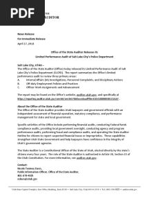 News Release - Office of The State Auditor Releases Audit of Salt Lake City's Police Department