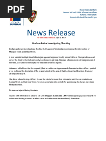 News Release: Durham Police Investigating Shooting