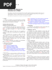 Chloride Ion in Water: Standard Test Methods For
