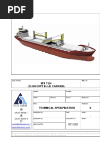 20K DWT Bulk Carrier Tech SpecPDF20K DWT Bulk Carrier Tech SpecAdded by kostas.micha0 ratingsfunction cn(e,t){var n=e+t;return n<=0?0:Math.round(e/n*100)}% found this document usefulSave 20K DWT Bulk Carrier Tech Spec for later