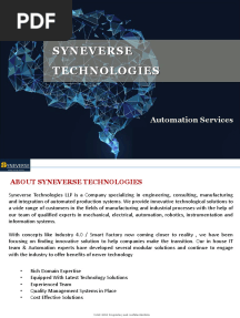 Turnkey Automation Solutions by SyneversePDFTurnkey Automation Solutions by SyneverseAdded by Raj0 ratingsfunction cn(e,t){var n=e+t;return n<=0?0:Math.round(e/n*100)}% found this document usefulSave Turnkey Automation Solutions by Syneverse for later