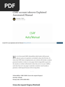 CSRF Account Takeover Vulnerability GuidePDFCSRF Account Takeover Vulnerability GuideAdded by Ak0 ratingsfunction cn(e,t){var n=e+t;return n<=0?0:Math.round(e/n*100)}% found this document usefulSave CSRF Account Takeover Vulnerability Guide for later