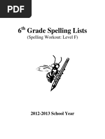 6th Grade (Level F) Spelling ListsPDF6th Grade (Level F) Spelling ListsAdded by Armaan 0 ratingsfunction cn(e,t){var n=e+t;return n<=0?0:Math.round(e/n*100)}% found this document usefulSave 6th Grade (Level F) Spelling Lists for later