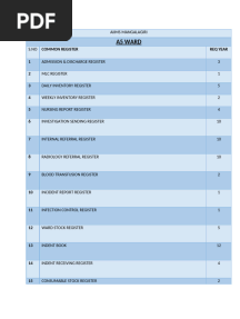 AIIMS Mangalagiri Ward Registers ListPDFAIIMS Mangalagiri Ward Registers ListAdded by dhaneesh0 ratingsfunction cn(e,t){var n=e+t;return n<=0?0:Math.round(e/n*100)}% found this document usefulSave AIIMS Mangalagiri Ward Registers List for later