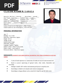 Engr. Claude Rabbi Lasala: Quantity Surveyor / Project Engineer / Site EngineerPDFEngr. Claude Rabbi Lasala: Quantity Surveyor / Project Engineer / Site EngineerAdded by Claude Reyes0 ratingsfunction cn(e,t){var n=e+t;return n<=0?0:Math.round(e/n*100)}% found this document usefulSave Engr. Claude Rabbi Lasala: Quantity Surveyor / Project Engineer / Site Engineer for later