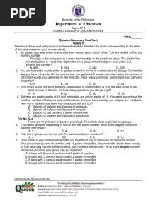 Grade 5 2024NumPost TestPDFGrade 5 2024NumPost TestAdded by marissa0 ratingsfunction cn(e,t){var n=e+t;return n<=0?0:Math.round(e/n*100)}% found this document usefulSave Grade 5 2024NumPost Test for later