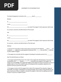 Assignment of Life Insurance PolicyPDFAssignment of Life Insurance PolicyAdded by VIKAS KOCHAR0 ratingsfunction cn(e,t){var n=e+t;return n<=0?0:Math.round(e/n*100)}% found this document usefulSave Assignment of Life Insurance Policy for later