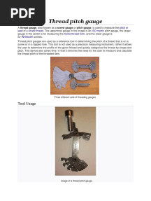 Thread Pitch Gauge: Pitch or Lead Screw Thread ISO Metric Acme Thread Form WhitworthPDFThread Pitch Gauge: Pitch or Lead Screw Thread ISO Metric Acme Thread Form WhitworthAdded by Amol100% (1)function cn(e,t){var n=e+t;return n<=0?0:Math.round(e/n*100)}% found this document usefulSave Thread Pitch Gauge: Pitch or Lead Screw Thread ISO Metric Acme Thread Form Whitworth for later