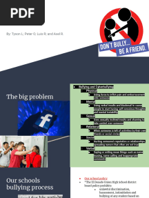Bullying PresentationPDFBullying PresentationAdded by api-4590457050 ratingsfunction cn(e,t){var n=e+t;return n<=0?0:Math.round(e/n*100)}% found this document usefulSave Bullying Presentation for later