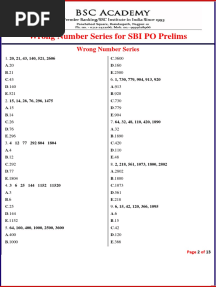 Wrong Number Series Questions Specially For Sbi Po PrelimsPDFWrong Number Series Questions Specially For Sbi Po PrelimsAdded by Neha Arora100% (1)function cn(e,t){var n=e+t;return n<=0?0:Math.round(e/n*100)}% found this document usefulSave Wrong Number Series Questions Specially For Sbi Po Prelims for later