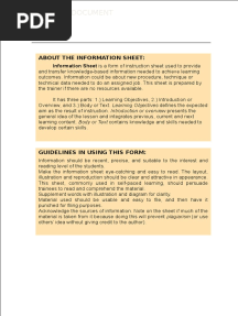 How To Use This Document: About The Information Sheet