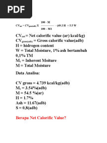 Berapa Net Calorific Value?: 100 - M CV CV X - (49.2 H + 5.5 W 100 - M1PDFBerapa Net Calorific Value?: 100 - M CV CV X - (49.2 H + 5.5 W 100 - M1Added by phygo0 ratingsfunction cn(e,t){var n=e+t;return n<=0?0:Math.round(e/n*100)}% found this document usefulSave Berapa Net Calorific Value?: 100 - M CV CV X - (49.2 H + 5.5 W 100 - M1 for later