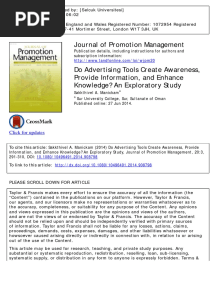 Journal of Promotion Management: Click For UpdatesPDFJournal of Promotion Management: Click For UpdatesAdded by Ali A0 ratingsfunction cn(e,t){var n=e+t;return n<=0?0:Math.round(e/n*100)}% found this document usefulSave Journal of Promotion Management: Click For Updates for later