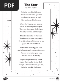 The Star by Jane Taylor - Poem Print-OutPDFThe Star by Jane Taylor - Poem Print-OutAdded by Kay Kay0 ratingsfunction cn(e,t){var n=e+t;return n<=0?0:Math.round(e/n*100)}% found this document usefulSave The Star by Jane Taylor - Poem Print-Out for later