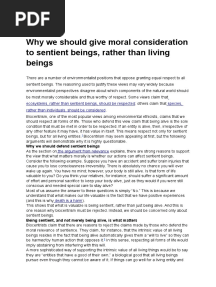 Why We Should Give Moral Consideration To Sentient Beings, Rather Than Living Beings - enPDFWhy We Should Give Moral Consideration To Sentient Beings, Rather Than Living Beings - enAdded by Tilea_Ramona0 ratingsfunction cn(e,t){var n=e+t;return n<=0?0:Math.round(e/n*100)}% found this document usefulSave Why We Should Give Moral Consideration To Sentient Beings, Rather Than Living Beings - en for later