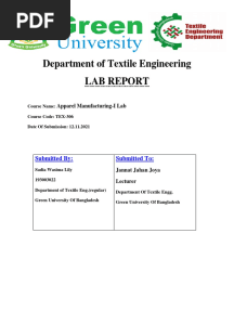 Department of Textile Engineering Lab Report: Apparel Manufacturing-I Lab