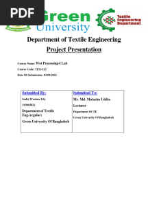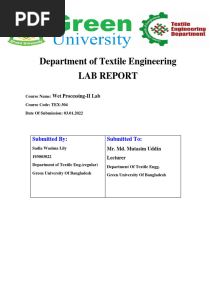 Department of Textile Engineering Lab Report: Submitted By: Submitted To