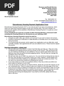 Discretionary Housing Payment Application Form: WWW - Northtyneside.gov - UkPDFDiscretionary Housing Payment Application Form: WWW - Northtyneside.gov - UkAdded by Tyra Atkinson0 ratingsfunction cn(e,t){var n=e+t;return n<=0?0:Math.round(e/n*100)}% found this document usefulSave Discretionary Housing Payment Application Form: WWW - Northtyneside.gov - Uk for later